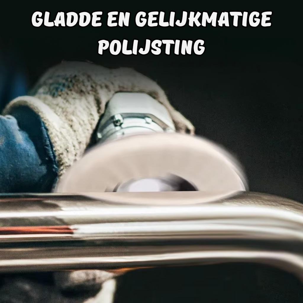 Zijn je spullen dof geworden, vol oxidatie of ontsierd door krassen na het polijsten? Met GlossBuff™ geef je ze in no-time weer die perfecte spiegelglans. Snel, makkelijk en zonder gedoe. Ideaal voor het opknappen van metaal, steen of zelfs je auto. De dikke wollen polijstschijf zorgt keer op keer voor een vlekkeloos, hoogglanzend resultaat.