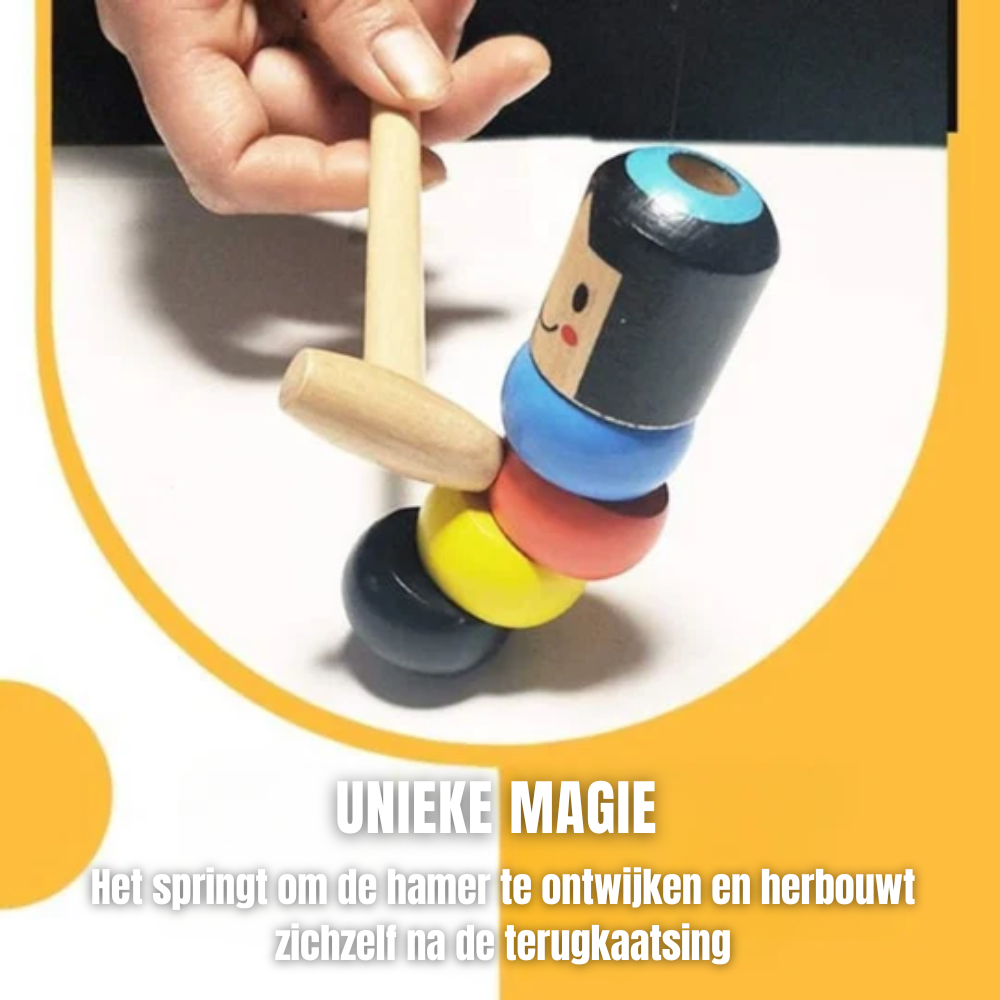 Laat je enthousiasmeren door Durawood™, een creatief houten speelgoed voor kinderen en volwassenen dat met zijn slimme ontwerp de zwaartekracht trotseert, verrassend springt en zichzelf steeds opnieuw opbouwt. Tijdens het spelen combineert het plezier en verwondering met het stimuleren van hand oog coördinatie, ruimtelijk denken en probleemoplossend leren.