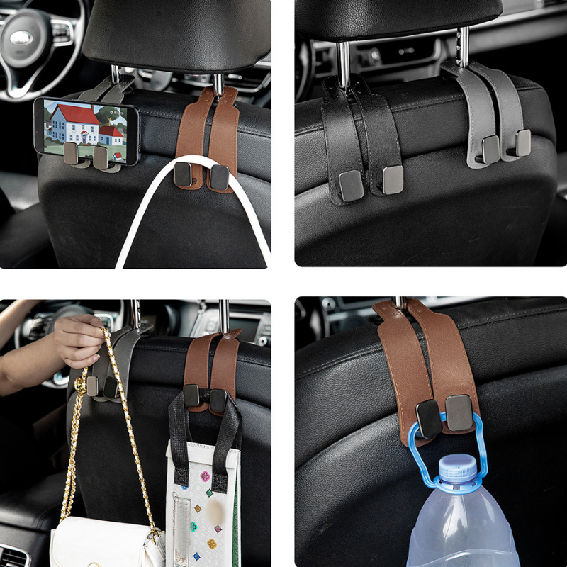 Losse tassen, jassen of afhaalmaaltijden kunnen autoritten al snel in een rommelige chaos veranderen. HangMate™ wordt stevig aan de hoofdsteun bevestigd en houdt tassen, kleding en andere spullen binnen handbereik en weg van de vloer. De elegante leren look geeft het interieur een stijlvolle uitstraling, terwijl het dubbele haakontwerp extra opbergruimte biedt zonder ruimte in te nemen.