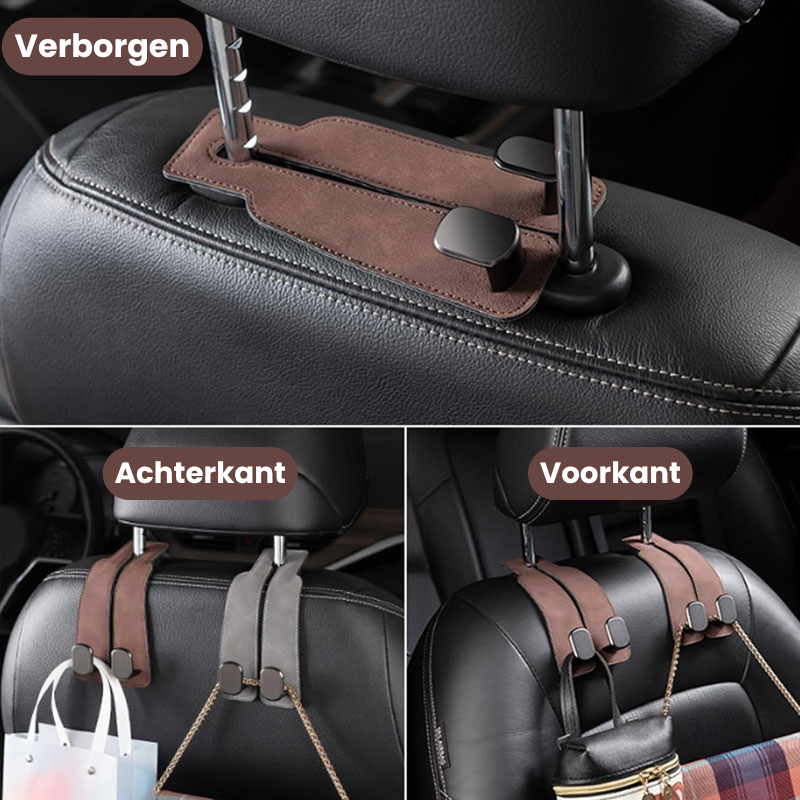 ✔ Geïntegreerde telefoonhouder: Gebruik de dubbele haak ook als standaard, ideaal voor op de achterbank.
